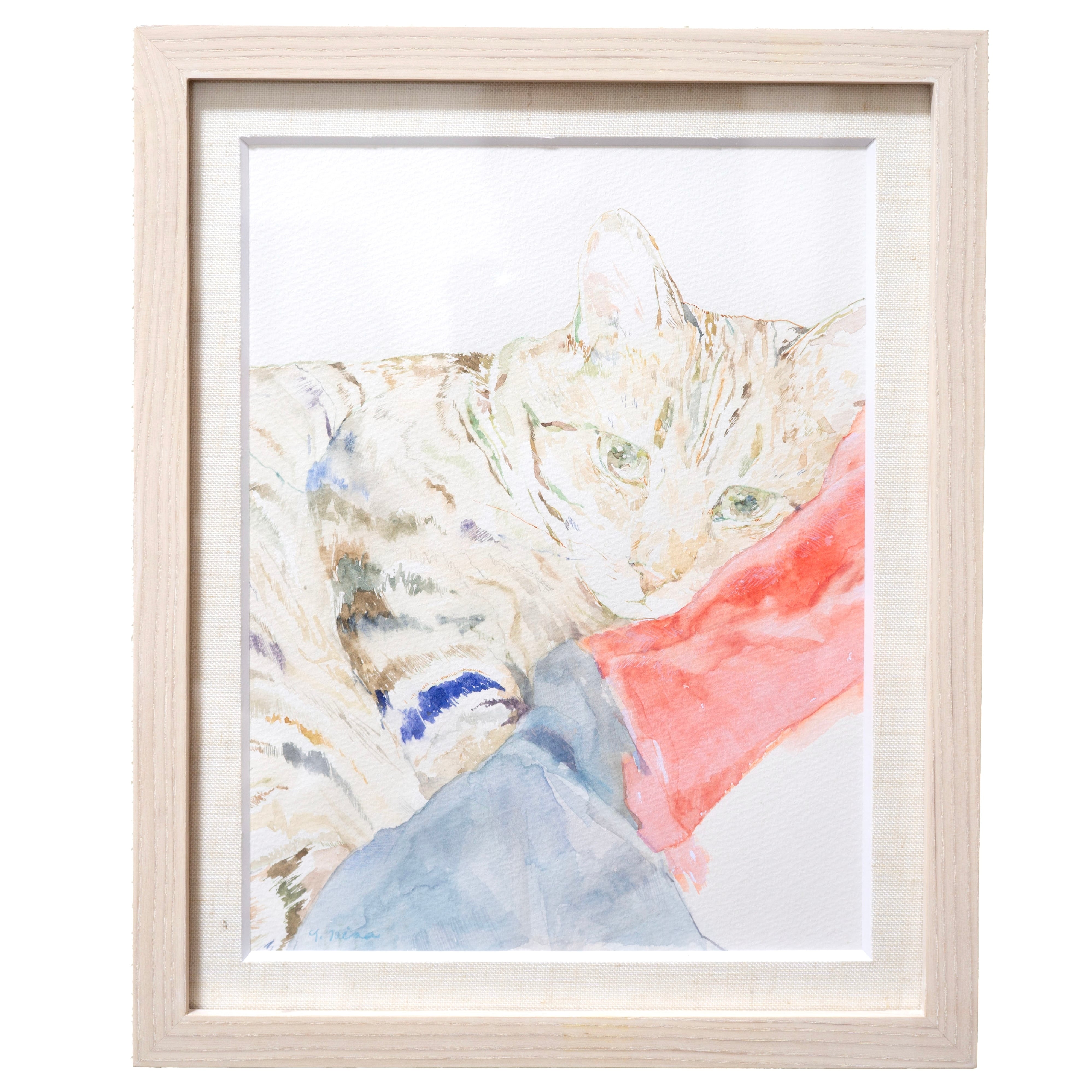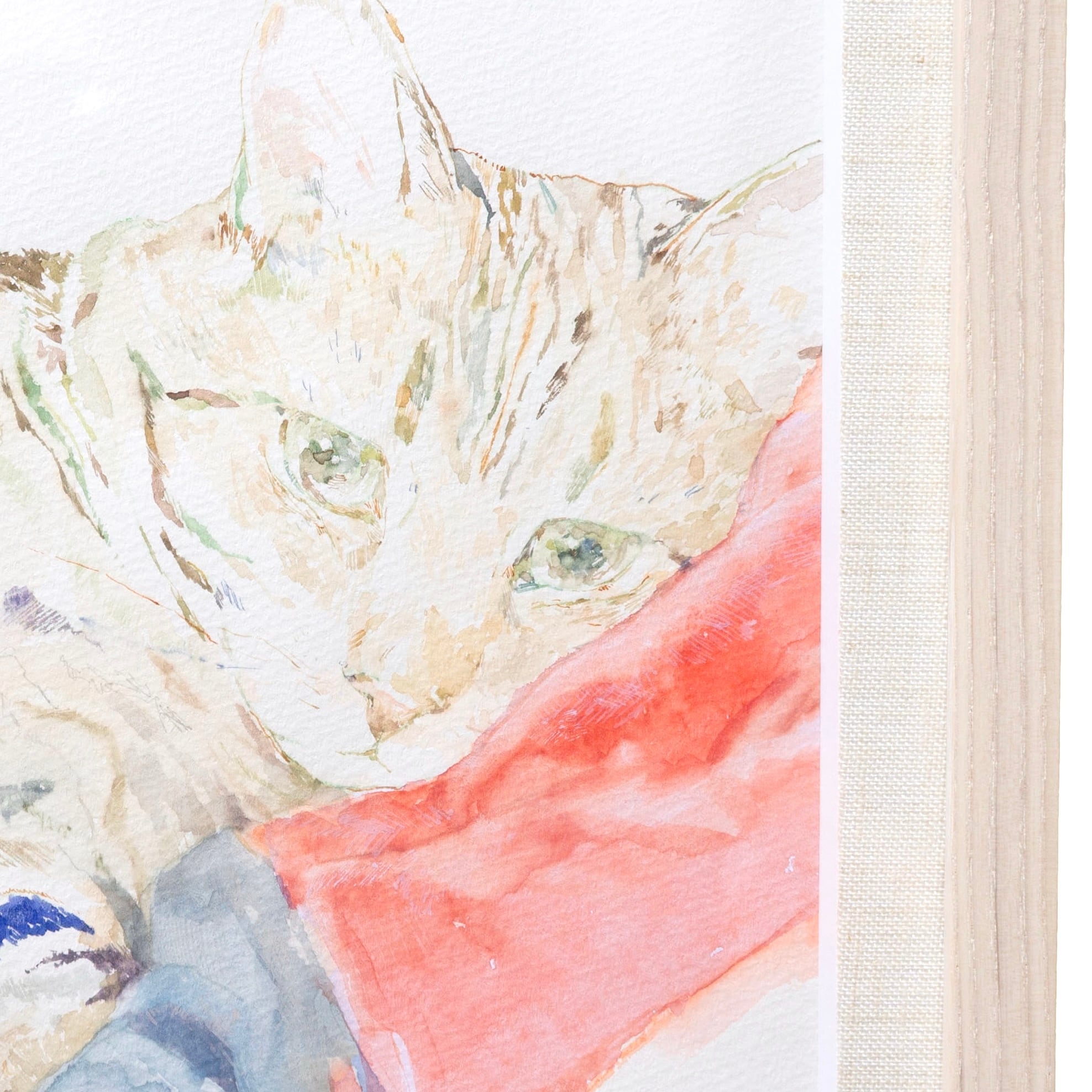 家族の服の山に埋もれて寝ていた様子を絵にしたいと思い制作しました。