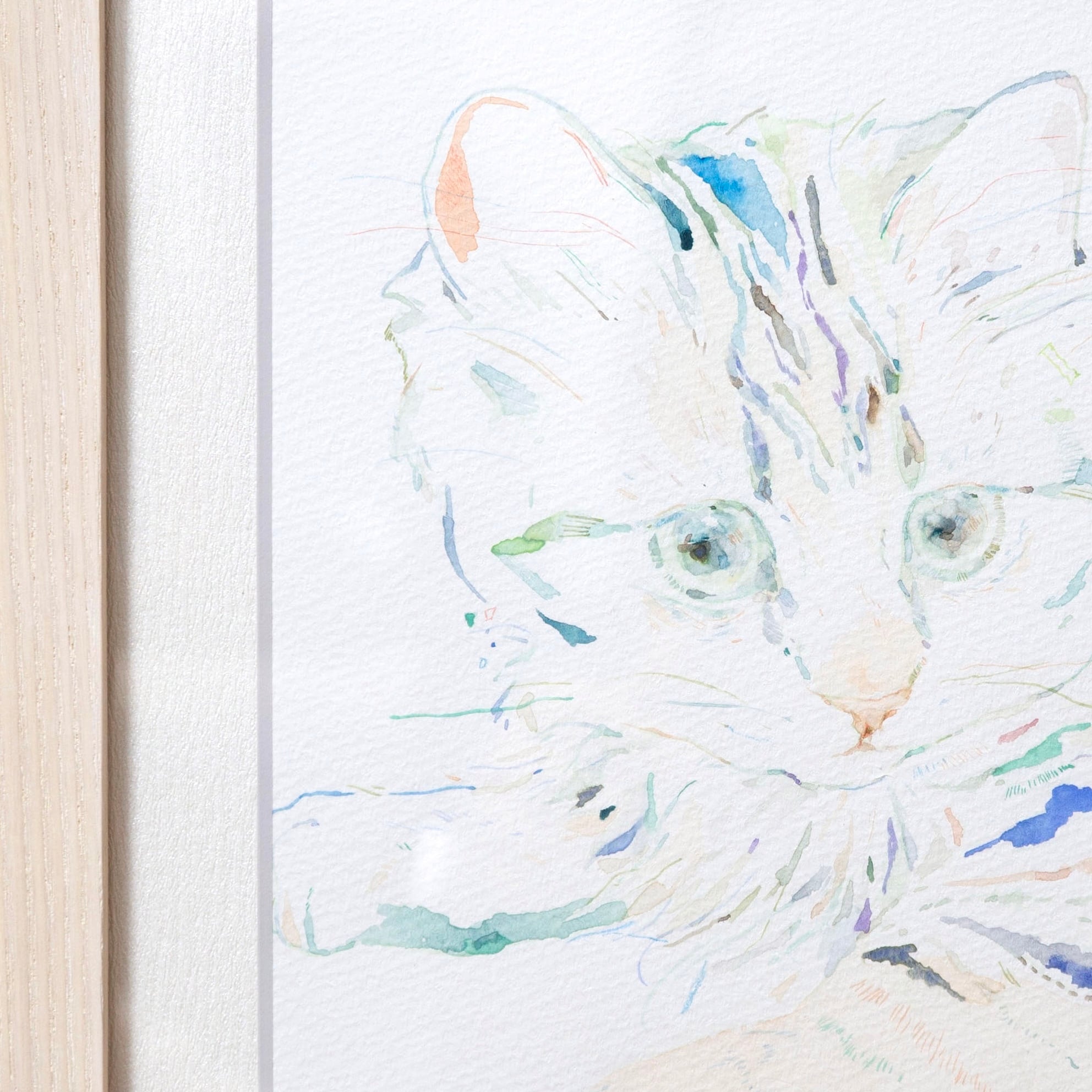 季節や空間から取れた色彩と、子猫ならではの表情を絵にしたいと思い制作しました。