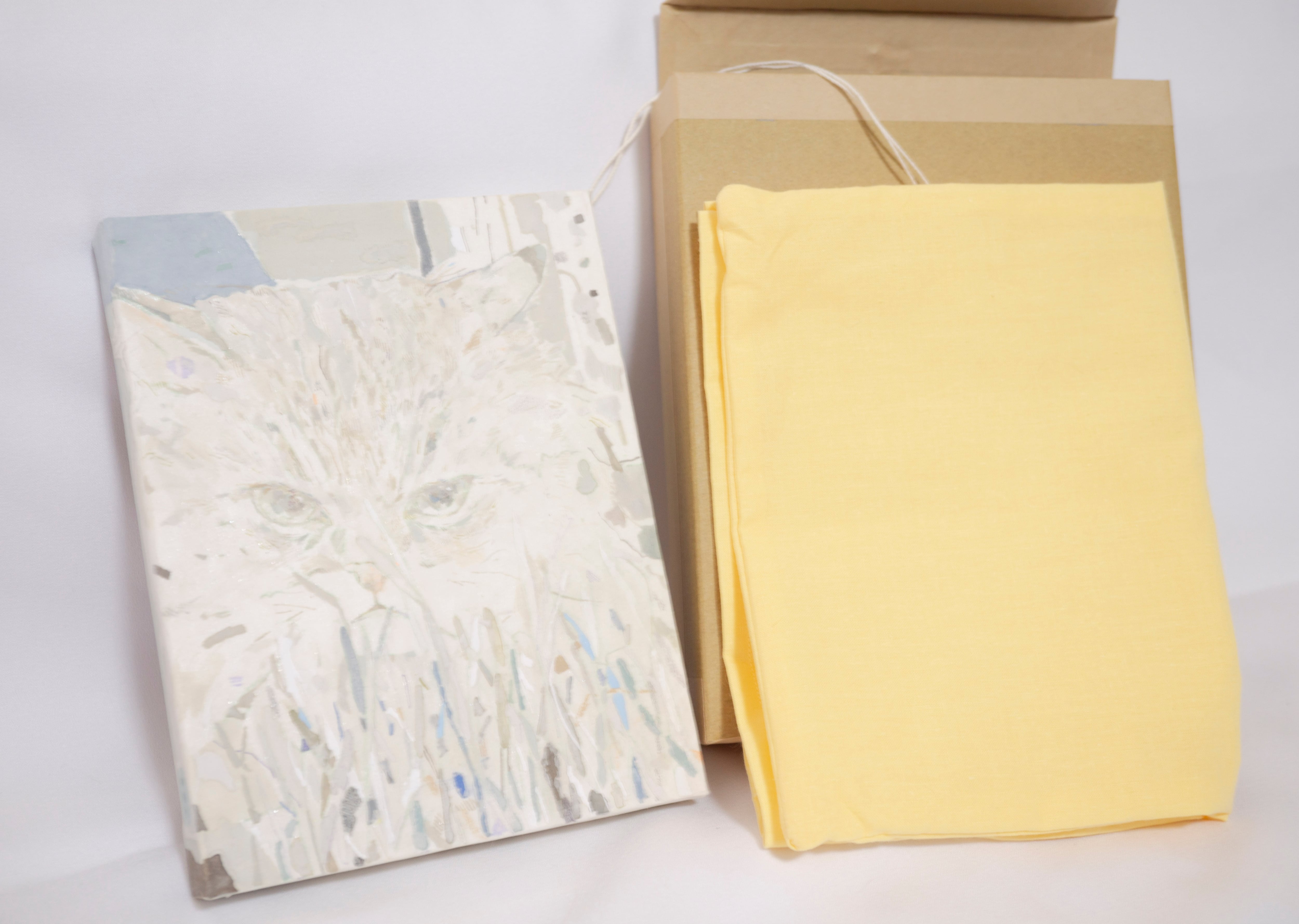 猫草を食べにくそうにしていた様子が愛らしく、絵にしたいと思い制作しました。